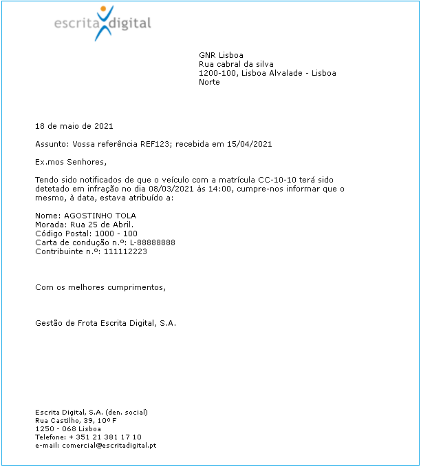 Além do registo da informação, destacamos a possibilidade de ter logo disponível, no processo, um documento pré-preenchido com toda a informação que lhe permite dar resposta à entidade autuante, dispensando assim qualquer preenchimento manual.
