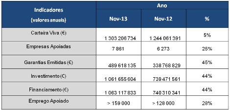 A Norgarante desde o início da sua atividade, e até 30 de novembro de 2013, prestou 66 836 garantias, num total de 3 555 milhões de euros. Estas garantias foram prestadas em benefício de 33 142 empresas, que empregaram cerca de 606 mil trabalhadores e que fizeram investimentos de 8 243 milhões de euros. A carteira de garantias é de 1 303 milhões de euros. No quadro abaixo apresentam-se os valores de 2013 e a variação face ao período homólogo.