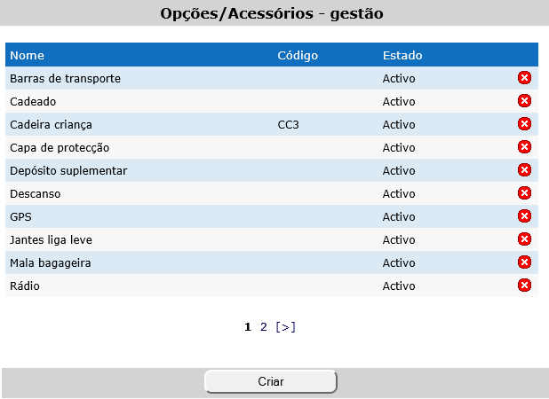 Clique na linha da opção/acessório que deseja alterar. Para guardar as alterações clique em |