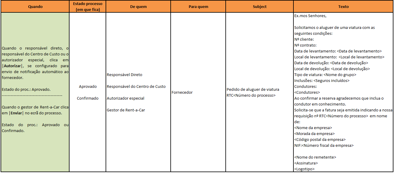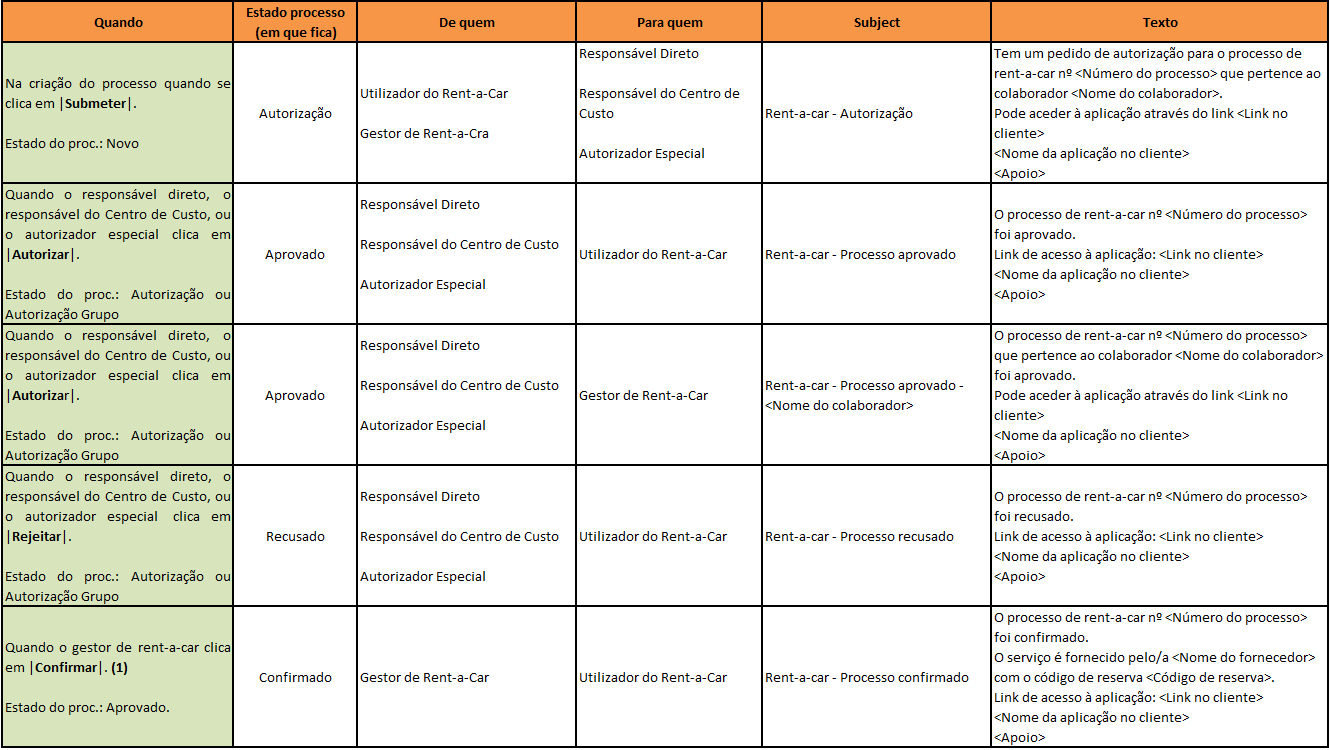 Nota: Os e-mails enviados aos Utilizadores ou Gestores de Rent-a-Car são também enviados para os utilizadores que lhes dão apoio se estes estiverem indicados (na ficha de utilizador da aplicação) para serem notificados.